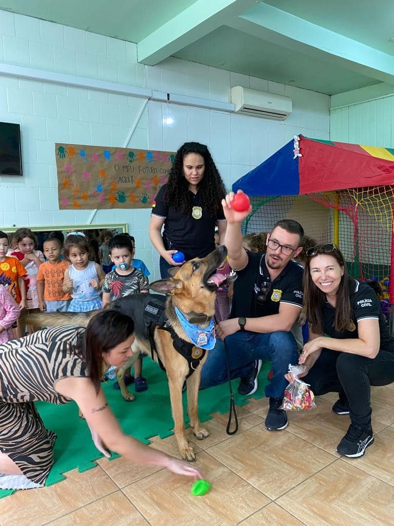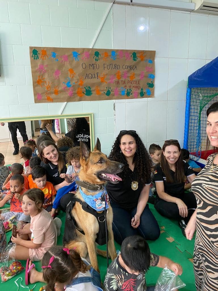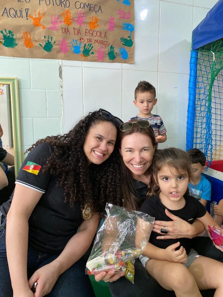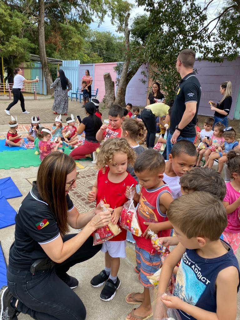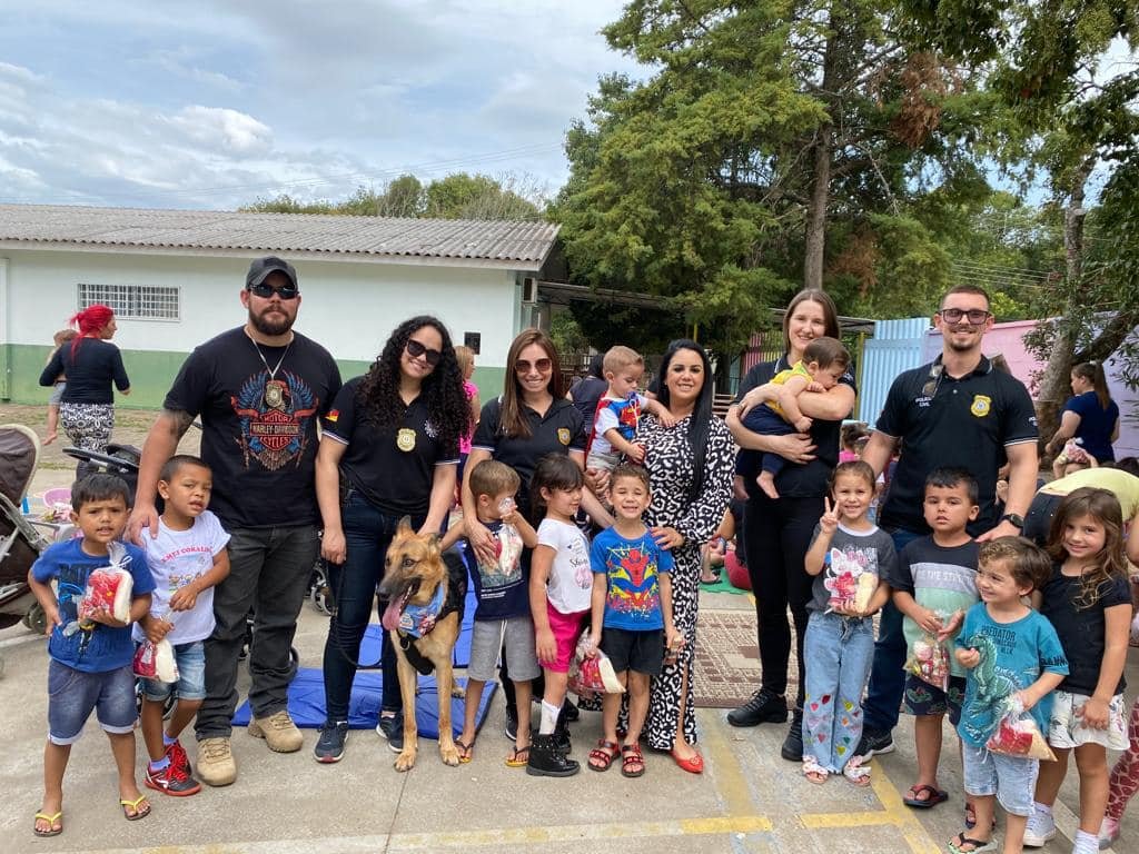 Participaram da entrega a Delegada Regional Fabiane Bittencourt, a inspetora Elaine e policiais da região, além do Dogão K-9. No dia 05/04/2023 serão contemplados cerca de 140 alunos da EMEI Zenith Ribas Flores no bairro Ipiranga e em torno de 10 crianças do Abrigo Alexandre Rauber Ortiz.
