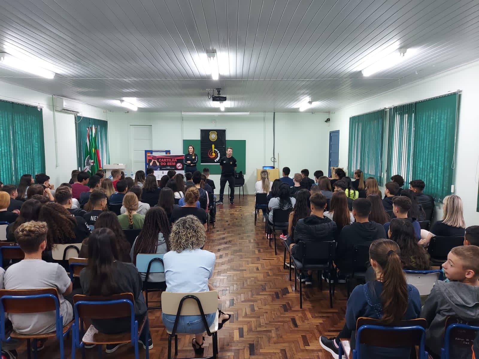 Na ocasião, os policiais conversaram com aproximadamente 250 alunos do 8° e 9° anos do ensino fundamental e do 1° ao 3° anos do ensino médio, em dois momentos, nos quais foram abordados assuntos relativos ao uso de drogas, objetivos de vida, responsabilidades, respeito com os professores, uso do celular, entre outros.