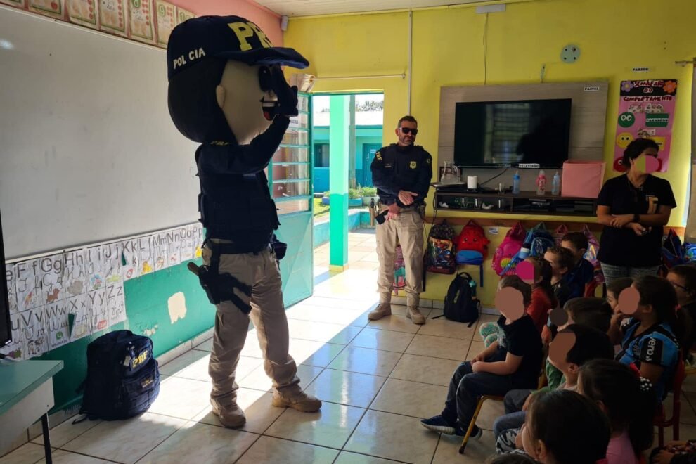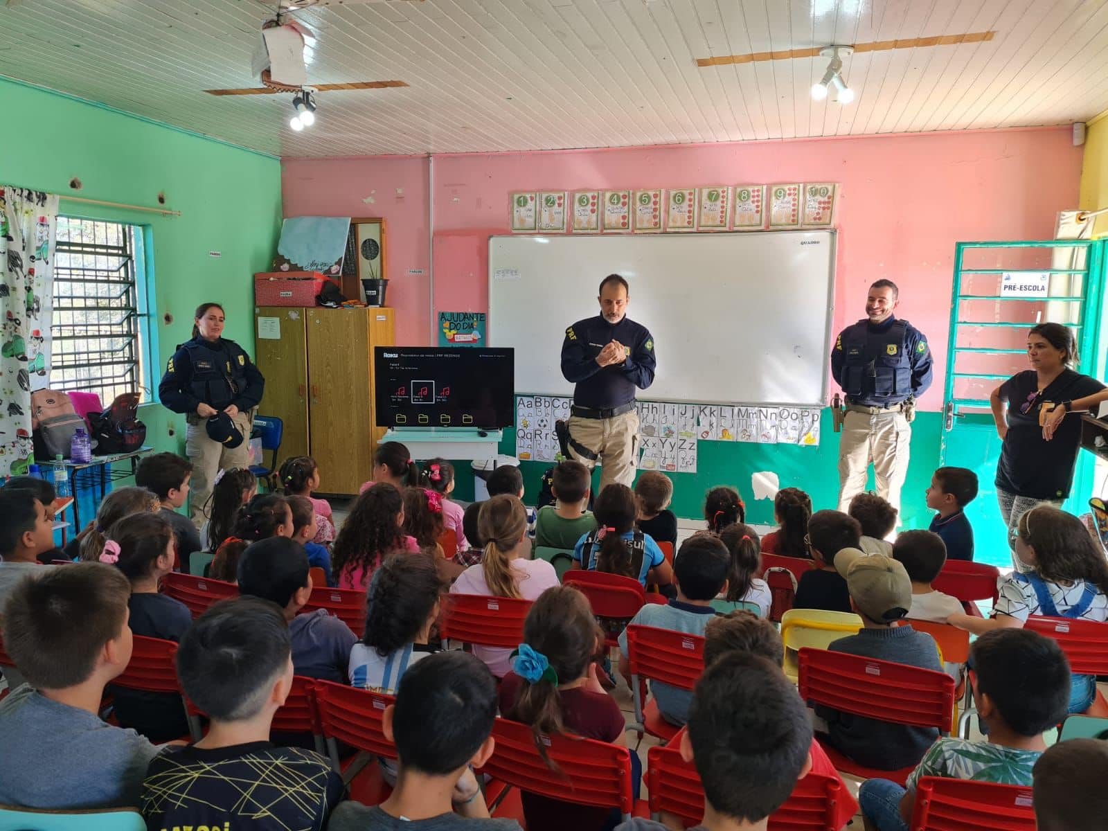 Na tarde desta quinta-feira (25), a Polícia Rodoviária Federal realizou uma ação educativa relacionada ao Projeto Escola Viva e ao Maio Amarelo no EMEF Joaquim Floriano Pinto.