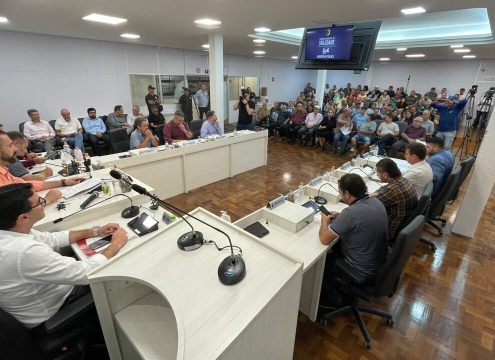 A Câmara de Vereadores de Soledade recebeu, na noite desta terça-feira, 14/04, durante audiência pública sobre os serviços da Corsan Aegea, um requerimento para a abertura de uma Comissão Parlamentar de Inquérito (CPI). A proposta foi apresentada pelo vereador Edson Ferreira Portela e conta com a assinatura de todos os parlamentares da Casa.