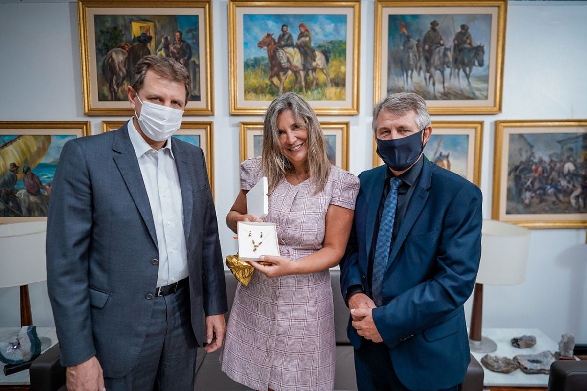 Durante a solenidade de entrega das peças, que aconteceu na quarta-feira, 27/1, Alessandra Polo, esposa do presidente da Assembleia Legislativa, deputado Ernani Polo, também foi presentada com uma joia em pedra preciosa.