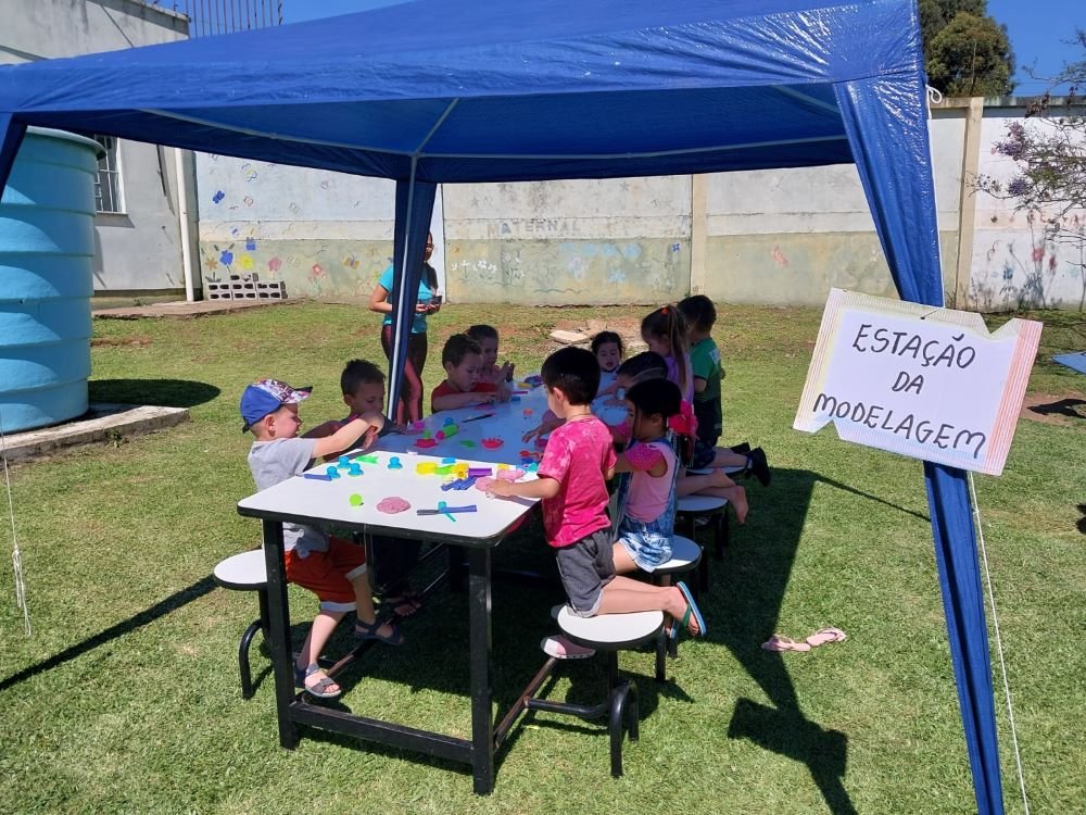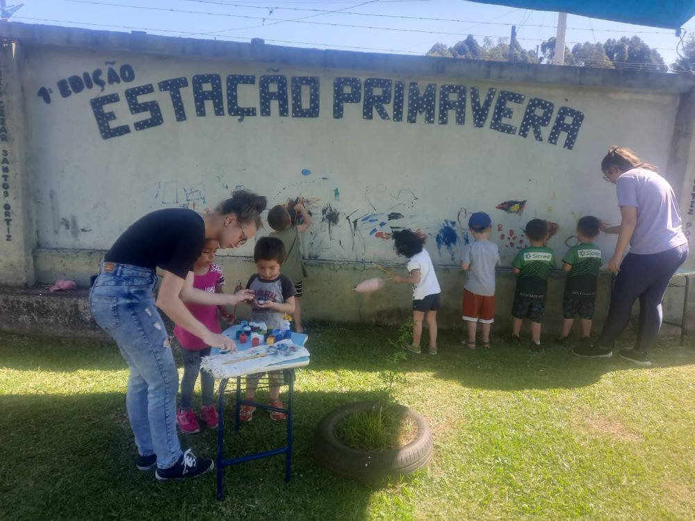 Entre pinturas, espaços de beleza e relaxamento, trilha sensorial e muitas brincadeiras, o Projeto Estação Primavera oportunizou a socialização e permitiu que as crianças explorassem o local ao ar livre e em contato com a natureza. Os espaços foram pensados e organizados com muito carinho, oferecendo oportunidades de criação, imaginação, construção, interações, explorações e aprendizagens.