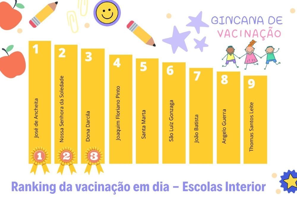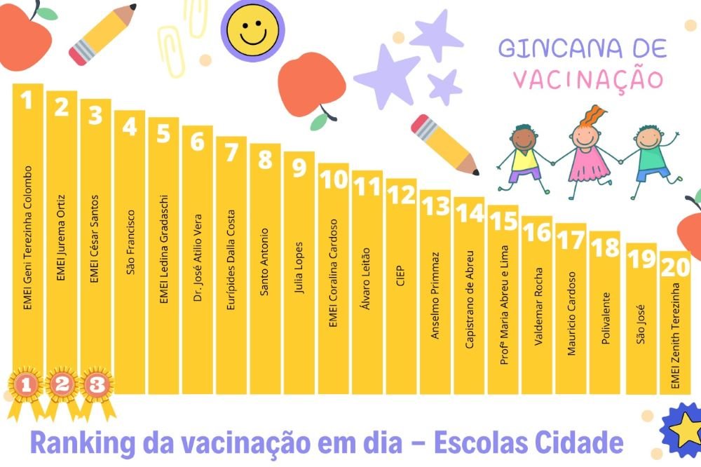 As escolas foram avaliadas conforme o número de alunos e as carteiras em dia, estabelecendo um ranking das escolas da cidade e do interior. Os primeiro lugares ficaram para EMEI Geni Terezinha Colombo, com 44,15%, sendo a melhor colocada entre as escolas da cidade, e a Escola José de Anchieta, com 68,51%, sendo a com maior número de alunos com a carteira de vacinação em dia, das escolas do interior.