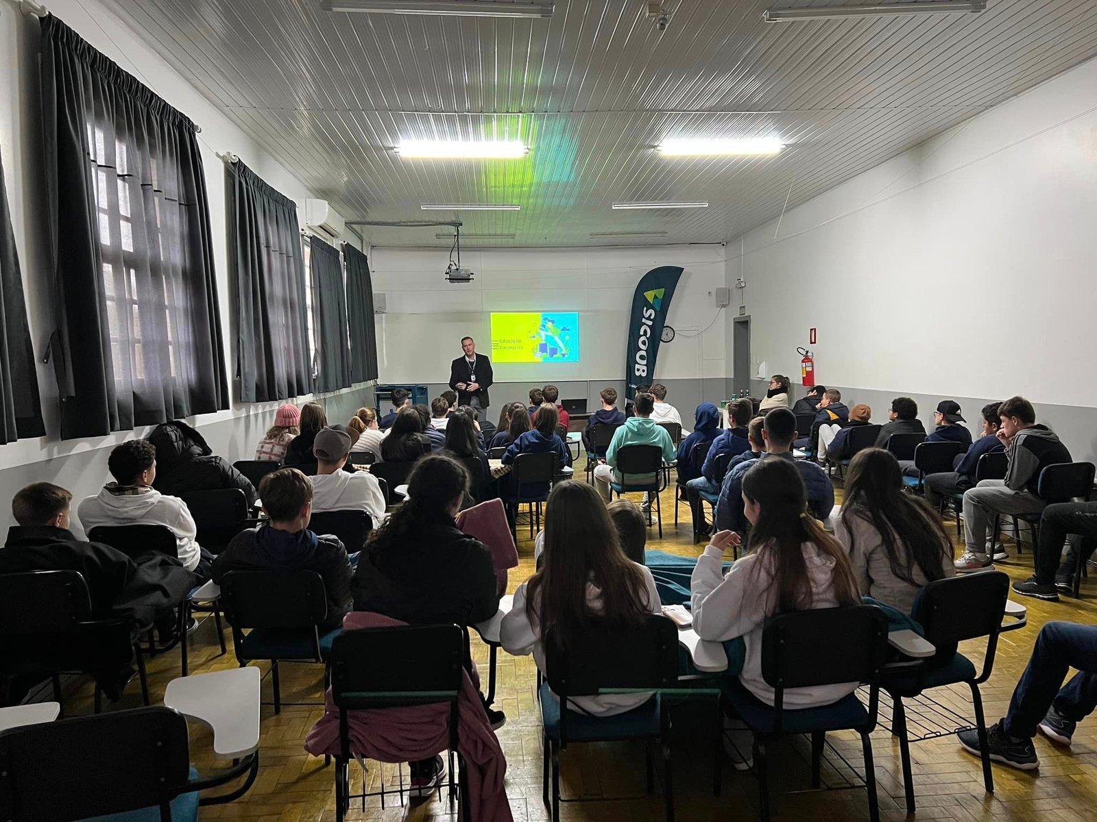 Na manhã dessa quinta-feira, 15/06, a agência Soledade da Sicoob São Miguel promoveu uma palestra de educação financeira para os anos finais do ensino fundamental do colégio Volare em Soledade.