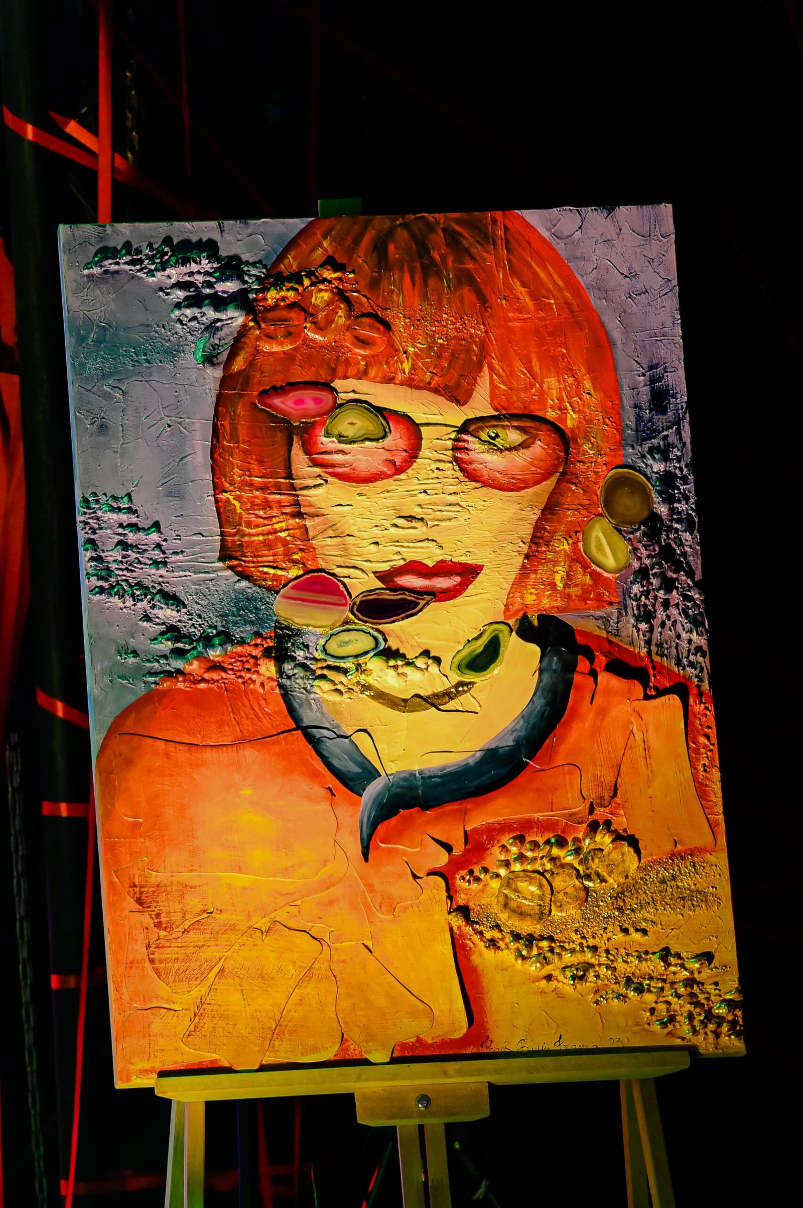 Era como se o destino tivesse um papel na história daquela tela. Anos após a aplicação das texturas, a inspiração para a obra finalmente surgiu, e veio na forma de Rita Lee. “Foi um presente da Rita pra mim. Ela que escolheu”, refletiu Thais, falando sobre como a inspiração para a pintura surgiu e se encaixou perfeitamente com a tela.