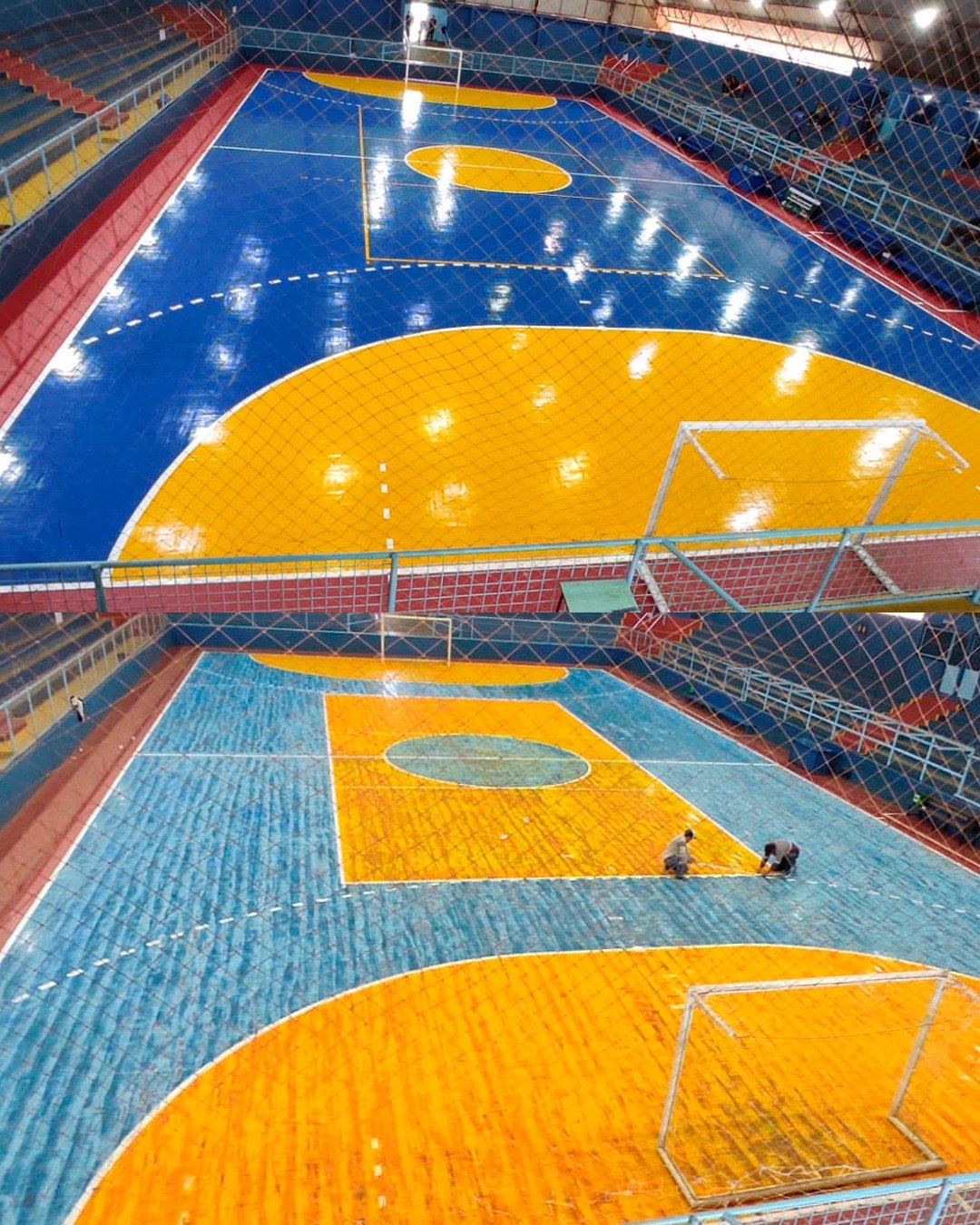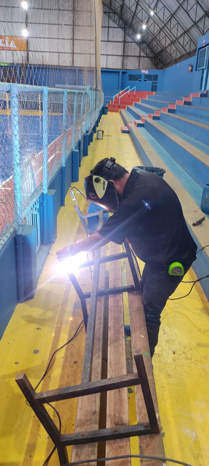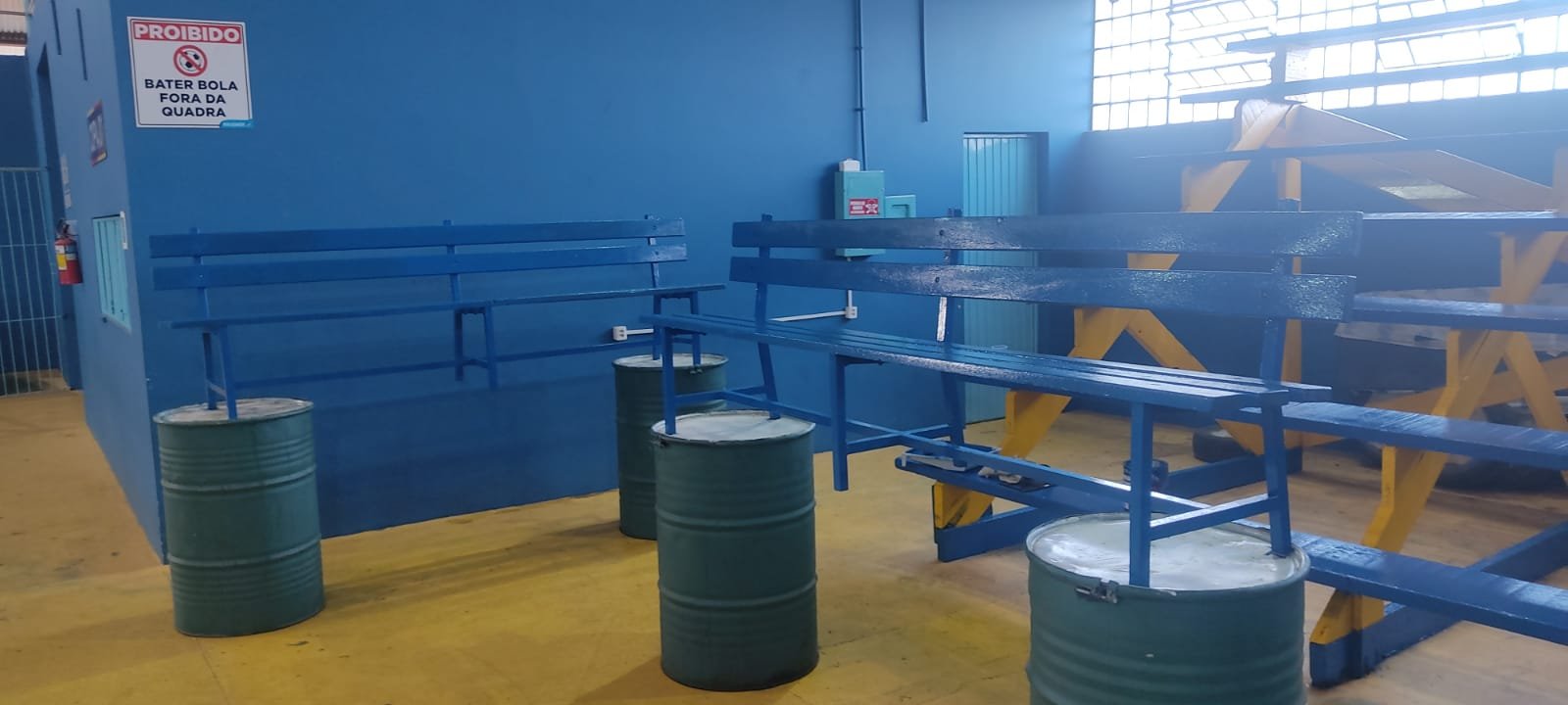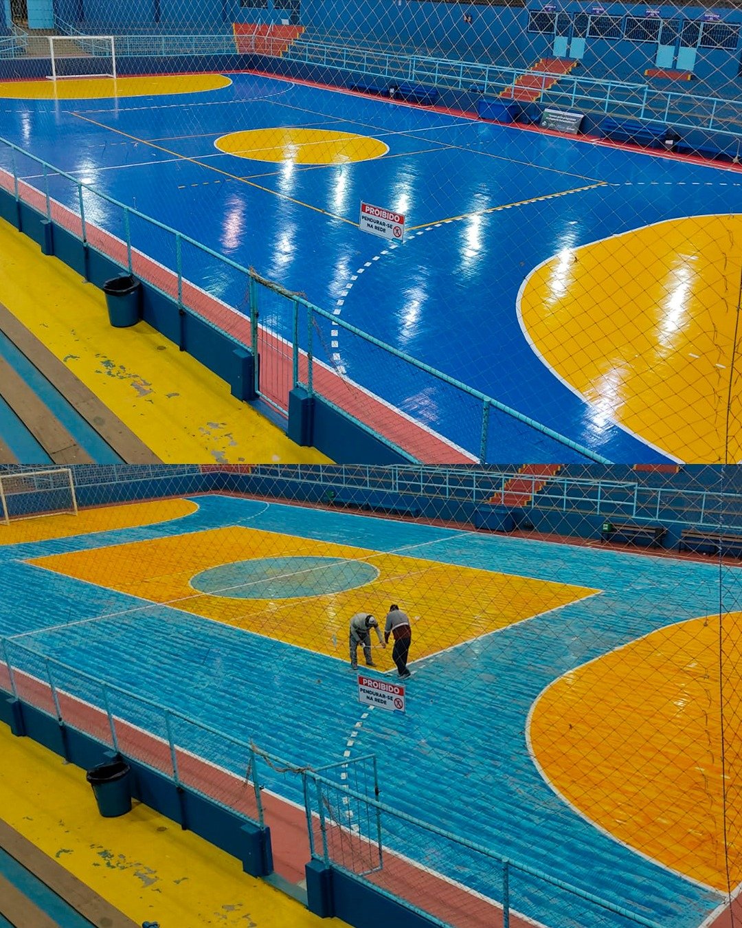 Parte do trabalho já puderam ser conferidas pela população durante as finais do futsal do interior. Foi lixada e pintada a quadra e goleiras, mesas e bancos, bem como feita a troca de refletores queimados e Instalação de novos no sistema led, serviços de solda para reparos em bancos, portas, portões e grades, e a limpeza geral do ginásio.