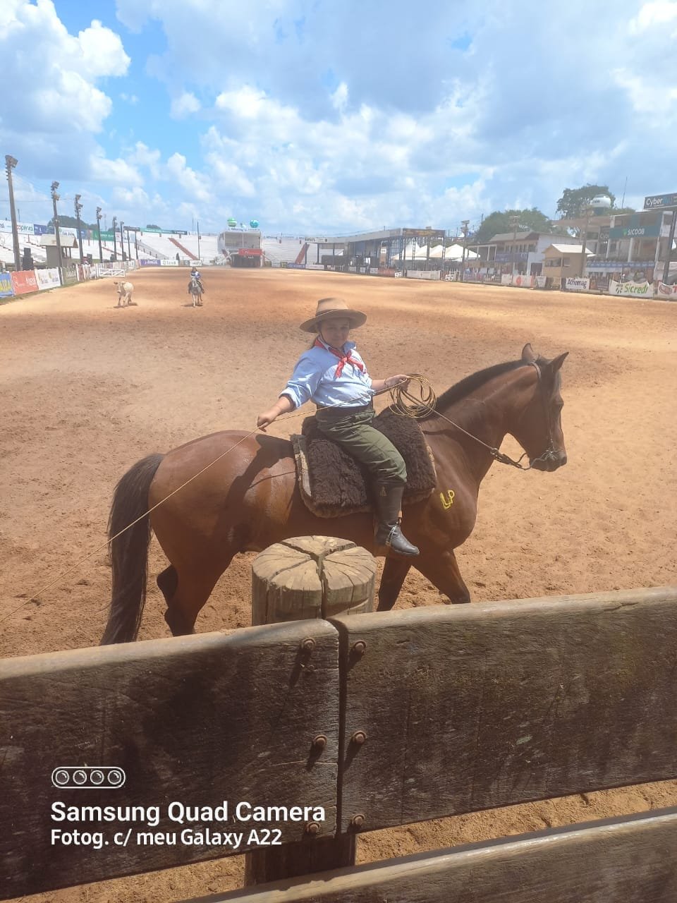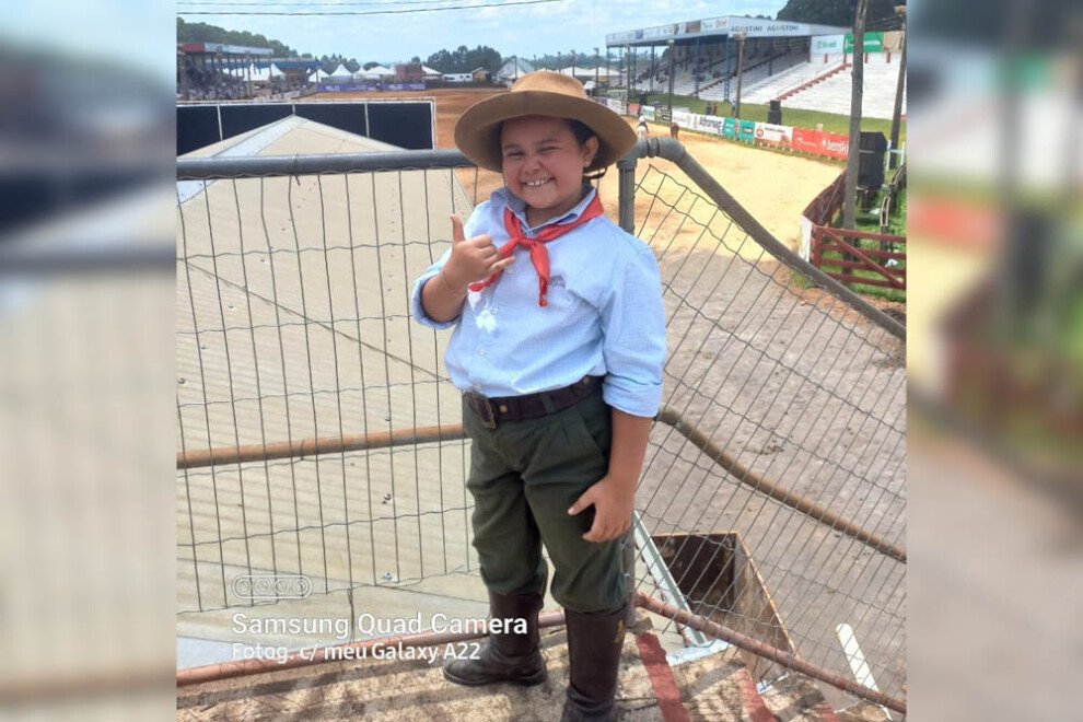 A jovem Paula Emília, com apenas 8 anos, já está fazendo nome no circuito de rodeios do Rio Grande do Sul. Representando Soledade, ela conquistou uma posição entre as cinco melhores na categoria Vaca Parada Prenda Mirim no 35º Rodeio Crioulo Internacional de Vacaria.