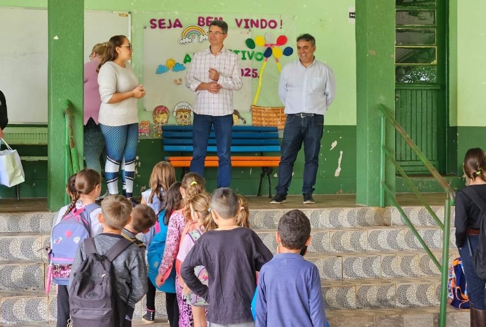 Dando continuidade às visitas às escolas do interior, o prefeito de Soledade, Paulo Ricardo Cattaneo, e o vice-prefeito, Jonas Morais, estiveram nesta quinta-feira (03/04) na Escola Municipal de Ensino Fundamental Thomás dos Santos Leite, na comunidade de Santa Terezinha.