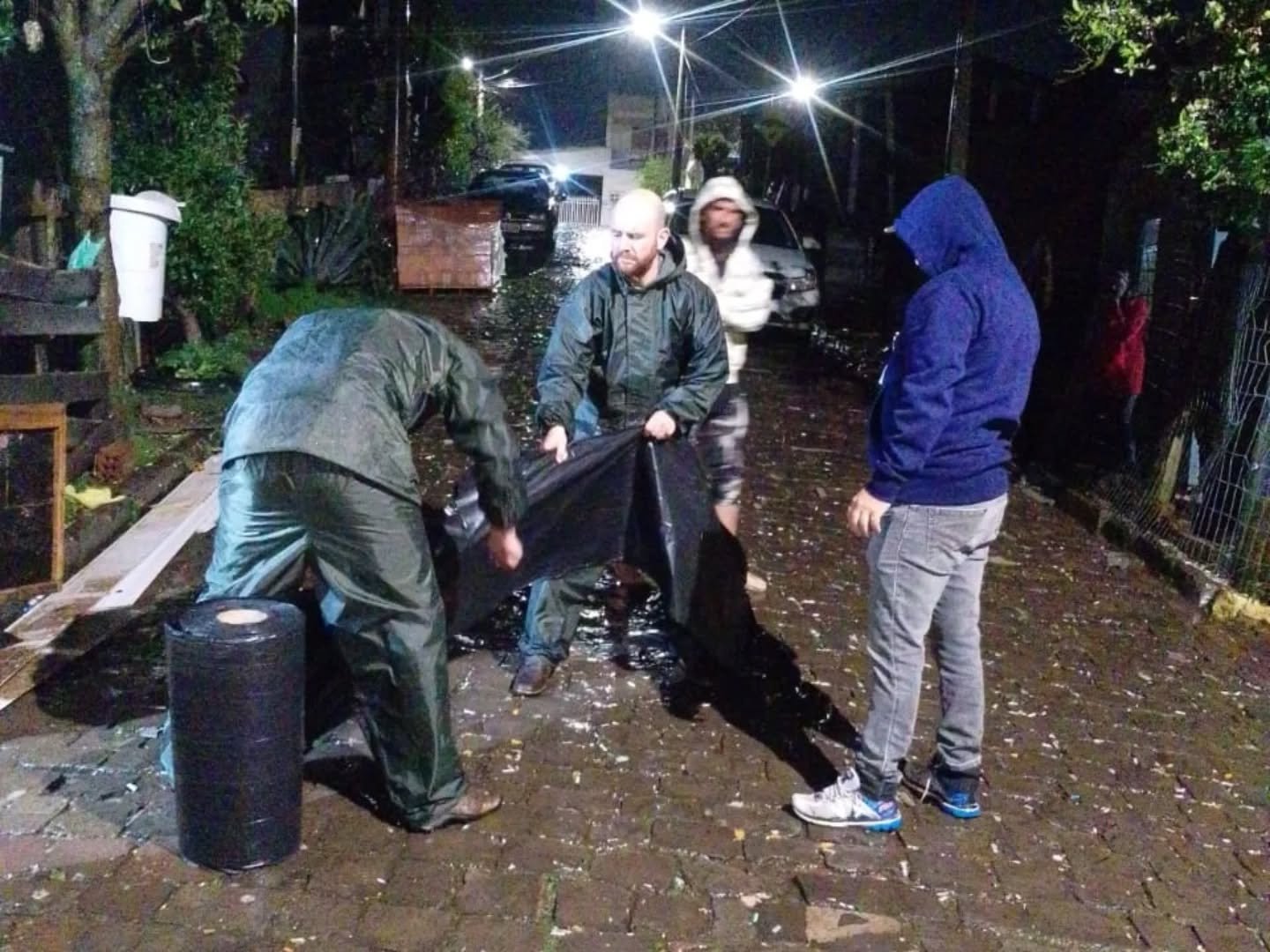 Equipes da Defesa Civil, da Secretaria de Obras, da Secretaria de Desenvolvimento Social e Habitação, além da Corporação de Bombeiros e da Brigada Militar, atuaram desde as primeiras horas no atendimento, com a entrega de lonas, limpeza de vias e apoio às famílias.