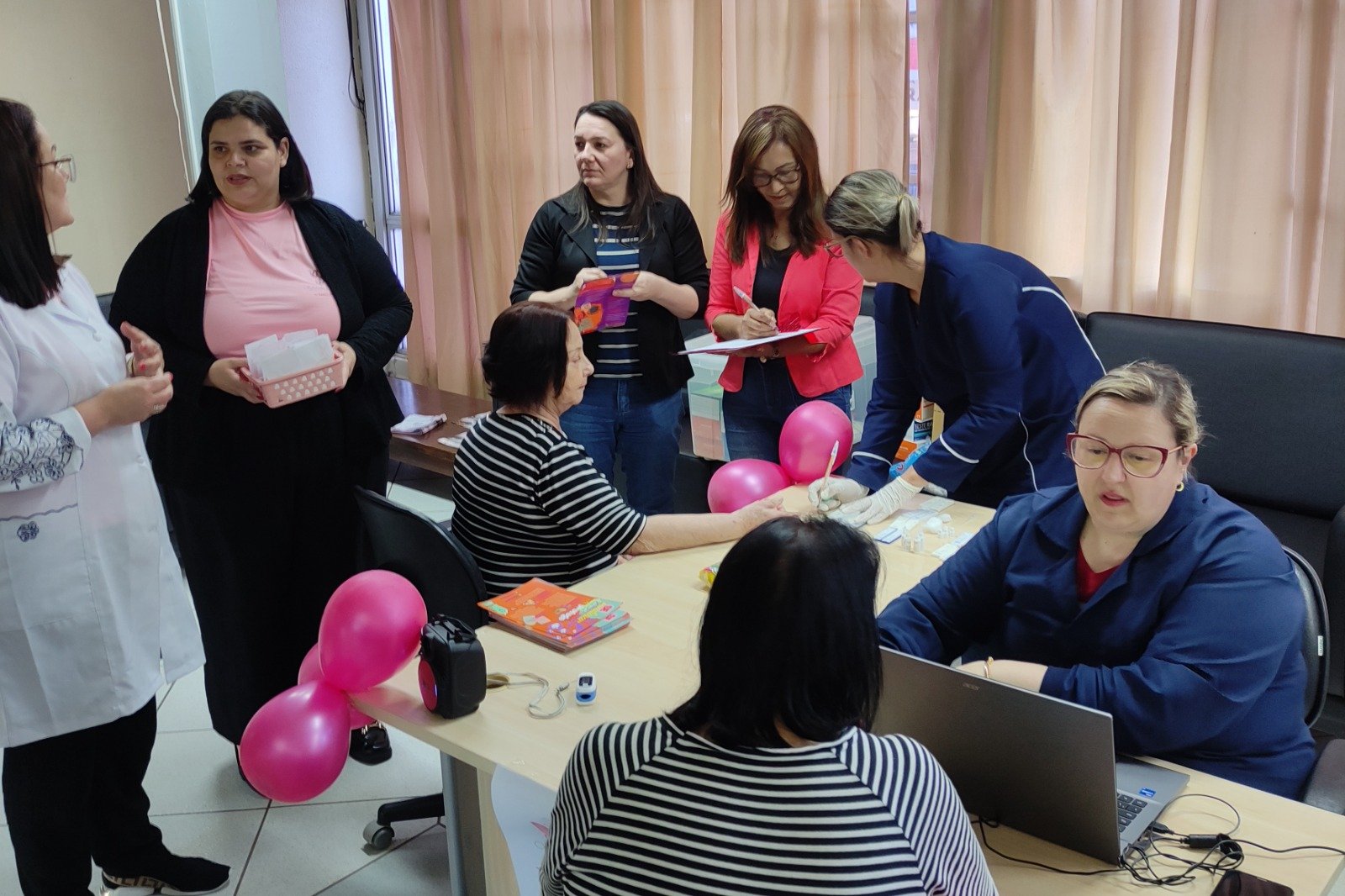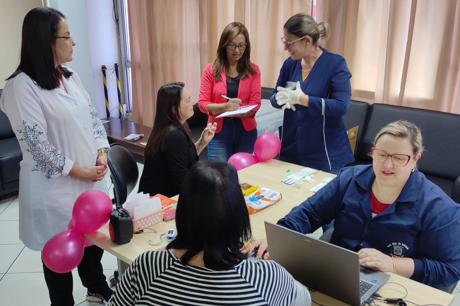 A iniciativa contou com o apoio do ESF Centro, que esteve presente realizando atendimentos e orientações de saúde aos servidores públicos municipais. Durante a ação, foram efetuados agendamentos de mamografia, de exames citopatológicos, além de testes rápidos e aferições de pressão arterial, bem como distribuídos folders informativos com orientações sobre os passos para a realização do autoexame das mamas.