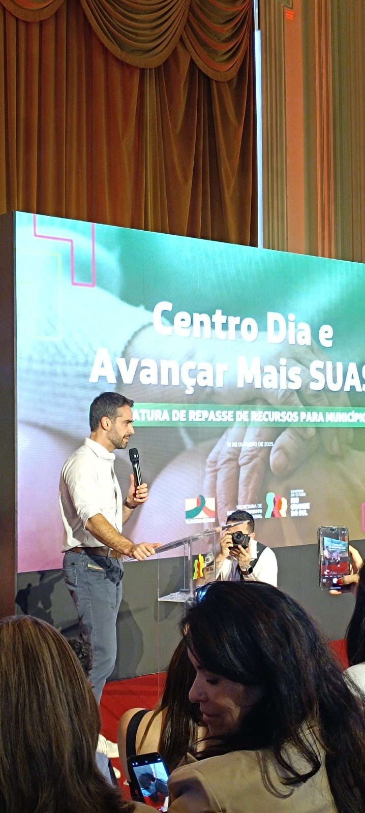 O Governo do Estado do Rio Grande do Sul oficializou, nesta quarta-feira (15/10), no Palácio Piratini, o repasse de R$ 69 milhões para os programas Avançar Mais SUAS e Centro Dia para Pessoa Idosa, beneficiando 148 municípios gaúchos. A cerimônia contou com a presença do governador Eduardo Leite e do secretário de Desenvolvimento Social, Beto Fantinel.