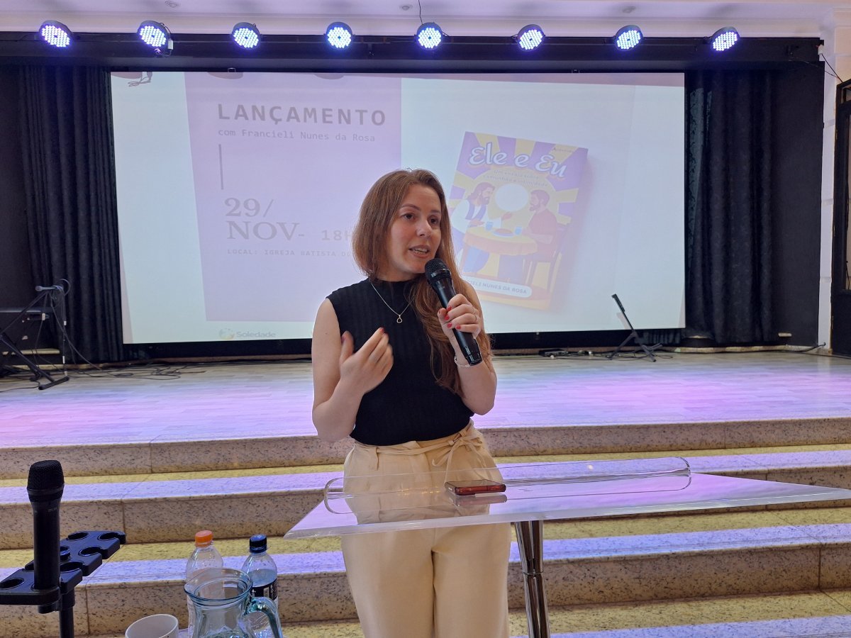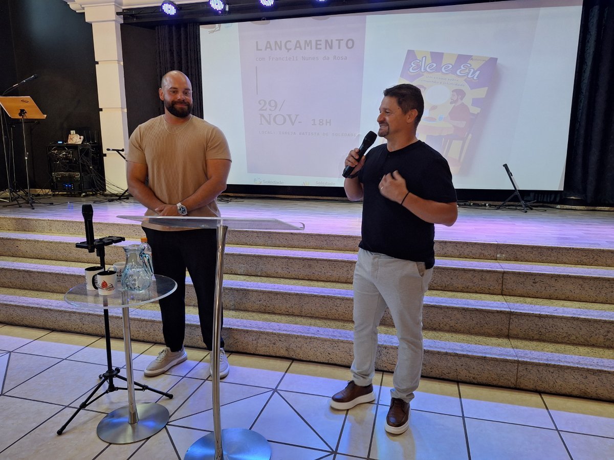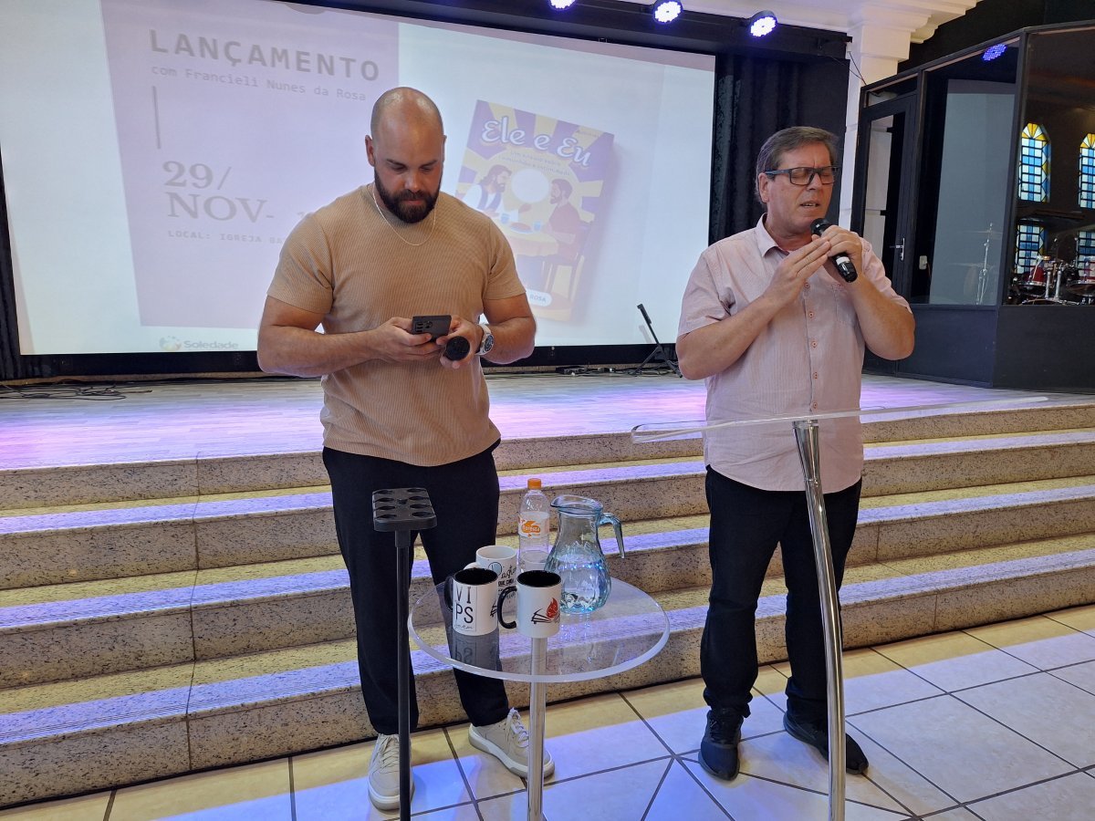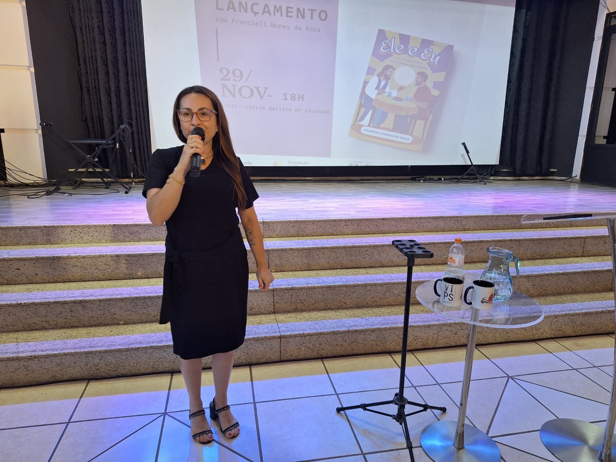 Foi realizado no final da tarde deste sábado, 29/11, na Igreja Batista em Soledade, o lançamento do livro Ele e Eu, de Francieli Nunes da Rosa. O evento reuniu familiares, amigos e convidados, que acompanharam a apresentação da obra e o compartilhamento das reflexões propostas pela autora sobre comunhão, vínculos, espiritualidade e o resgate do tempo à mesa nas relações humanas.