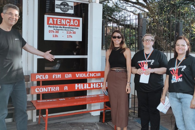 A mobilização foi finalizada em frente à Secretaria Municipal da Saúde de Soledade, com a inauguração do banco vermelho, símbolo de conscientização e enfrentamento à violência contra a mulher.