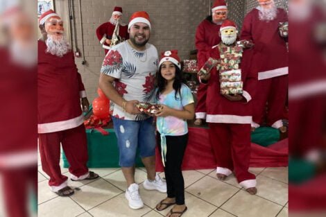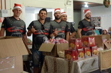 Foram entregues kits de Natal no Lar Mãe Cúria e no abrigo Alexandre Rauber Ortiz.