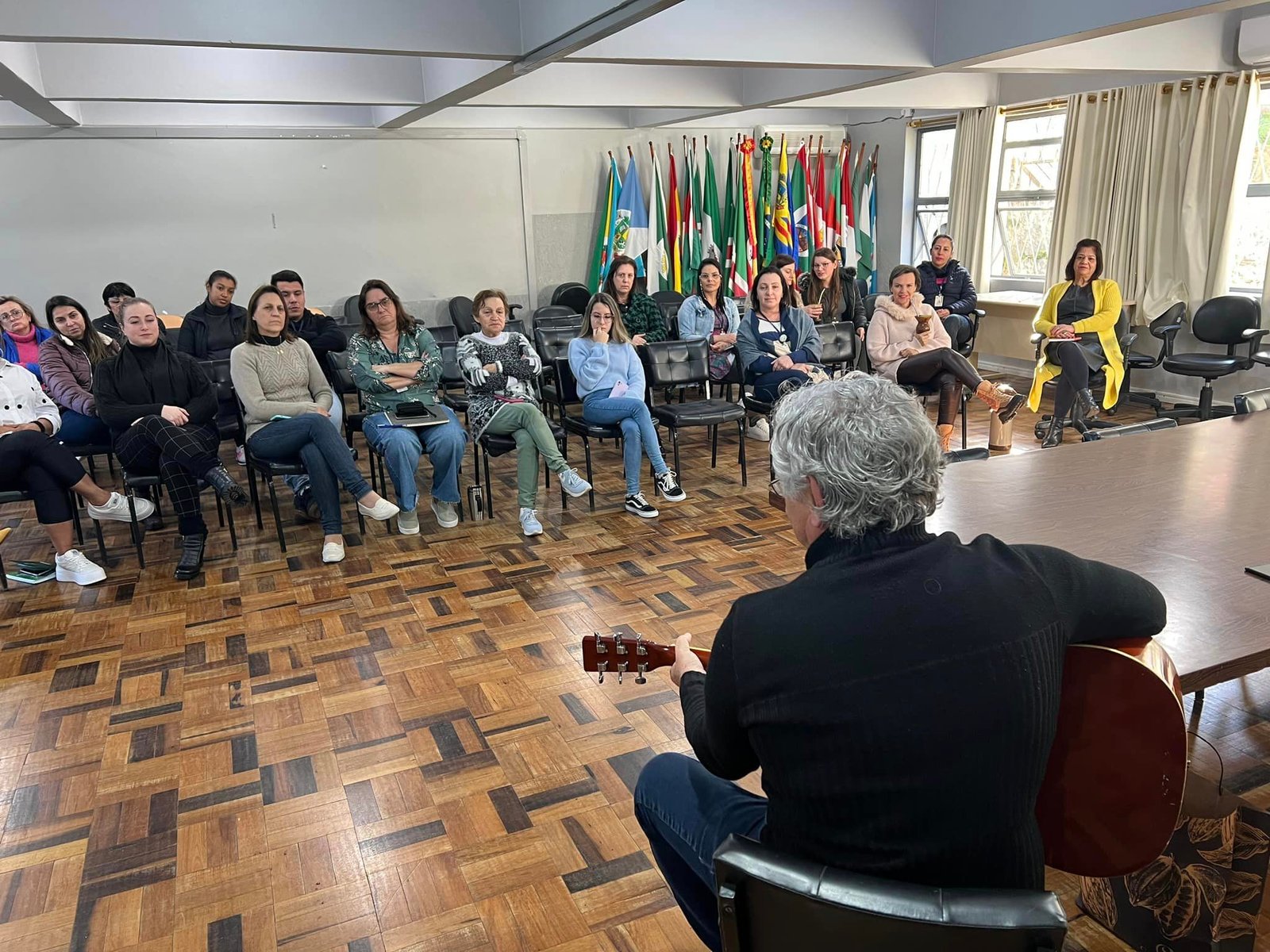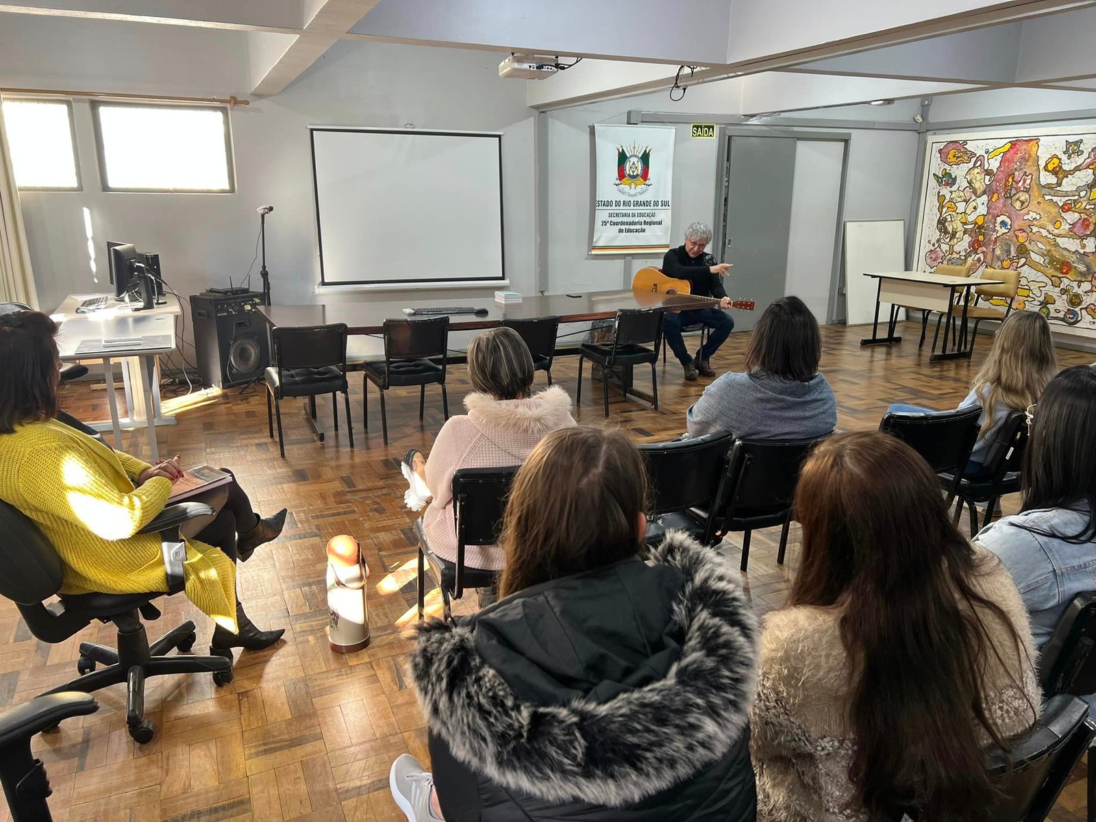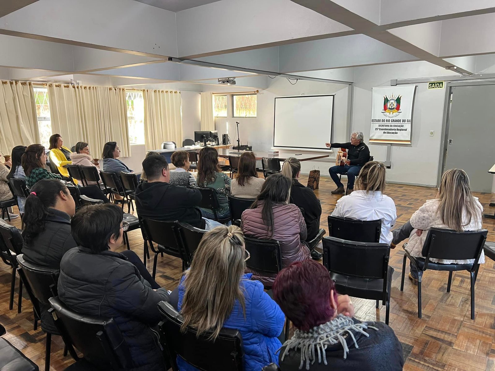Na tarde desta quarta-feira, 05/07, o radialista e cantor Jairo Ferreira ministrou uma oficina para os servidores da 25ª Coordenadoria Regional de Educação sobre superação de vida e sonhos.
