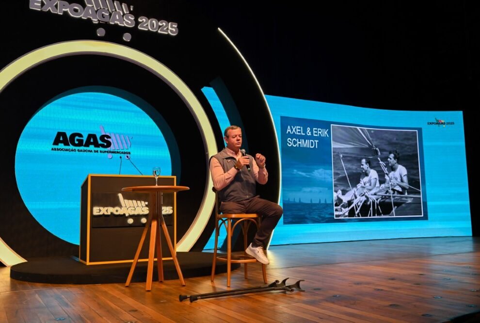 “Ajuste as suas velas e supere seus limites” foi o tema da palestra de Lars Grael na manhã desta quinta-feira (21), no Teatro da Fiergs, durante a 42ª Convenção Gaúcha de Supermercado – Expoagas 2025. Campeão olímpico e mundial de vela, Grael trouxe um tom motivacional ao evento, reforçando a importância da resiliência, da determinação e da superação diante dos desafios.