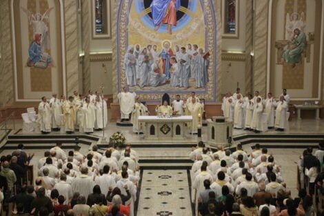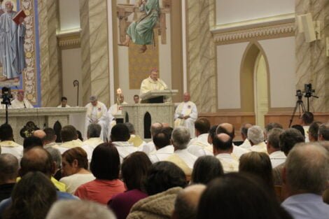 A missa foi inicialmente presidida por Dom Leomar Brustolin, Arcebispo de Santa Maria e Presidente do Regional Sul 3, que após entrega do Báculo, passou a presidência à Dom Nélio.