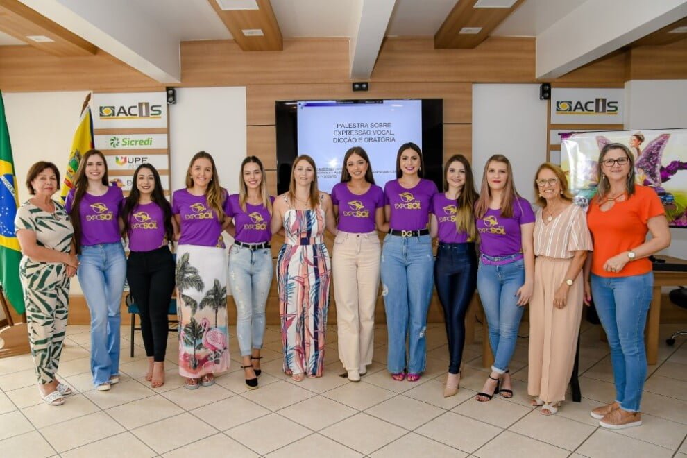 As oito candidatas que concorrem à Corte da Exposol 2024 participaram na tarde de sábado, 14/01, de mais uma palestra preparatória do concurso. O encontro aconteceu no auditório da ACIS e teve como palestrante a fonoaudióloga Janaína Lupatini.