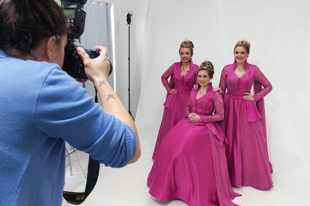 O ensaio fotográfico com os novos vestidos foi realizado na manhã de sábado, 09/12, contando com a presença de integrantes do núcleo de comunicação da Exposol 2024, Vinícius Moreira e Maurício Orsolin, e as responsáveis pelo setor de recepção e soberanas da feira, Dilma de Oliveira e Rejani Piccoli.