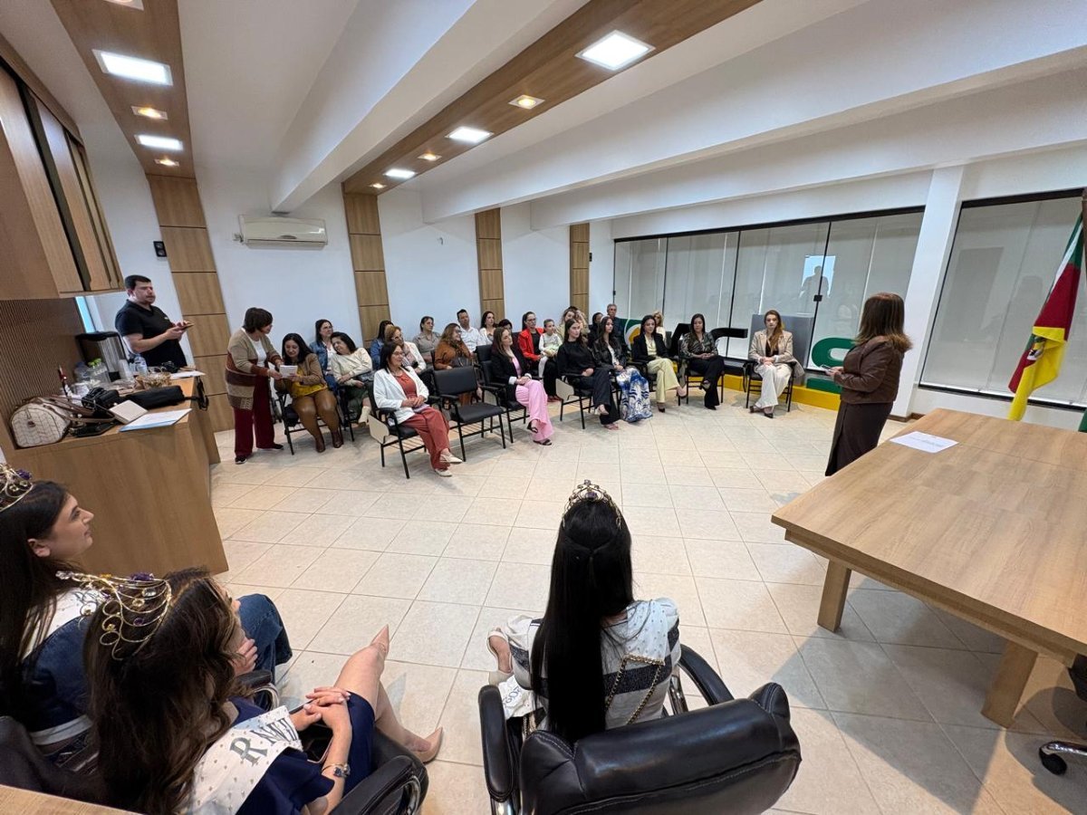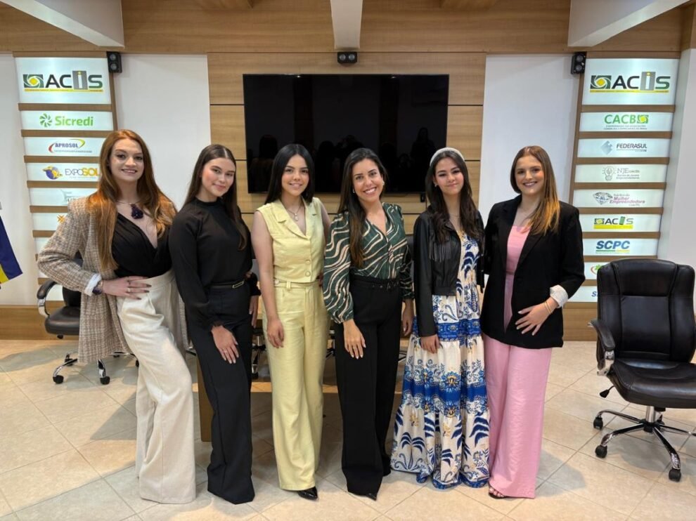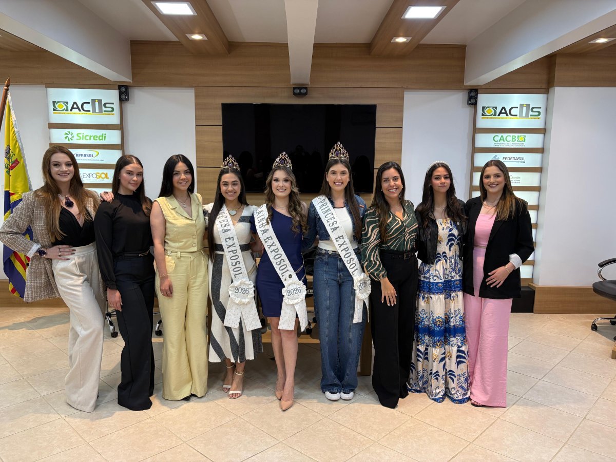 A atual Corte da Exposol 2026, formada pela Rainha Ingrid Ottoni e pelas Princesas Eduarda Schaeffer de Camargo e Larissa Sonda, também participou do encontro, prestigiando as candidatas e compartilhando com elas a experiência de representar a feira.