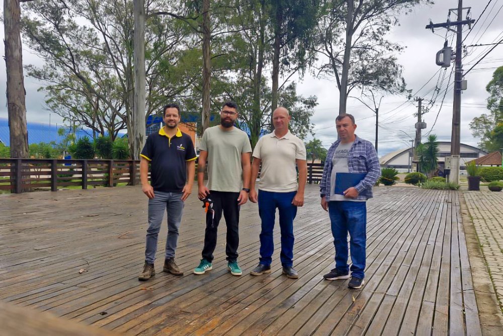 Na manhã desta segunda-feira, 12 de janeiro, o gestor geral da Aprosol, Orlando Sebastião Klein, e os responsáveis pelo setor de shows da Exposol 2026, Vinícius Moreira e Vinícius Lamaison, estiveram reunidos com Elemar Schubert e Anderson Allebrand da empresa STR Estruturas para formalizar a parceria voltada à execução das estruturas externas da feira.