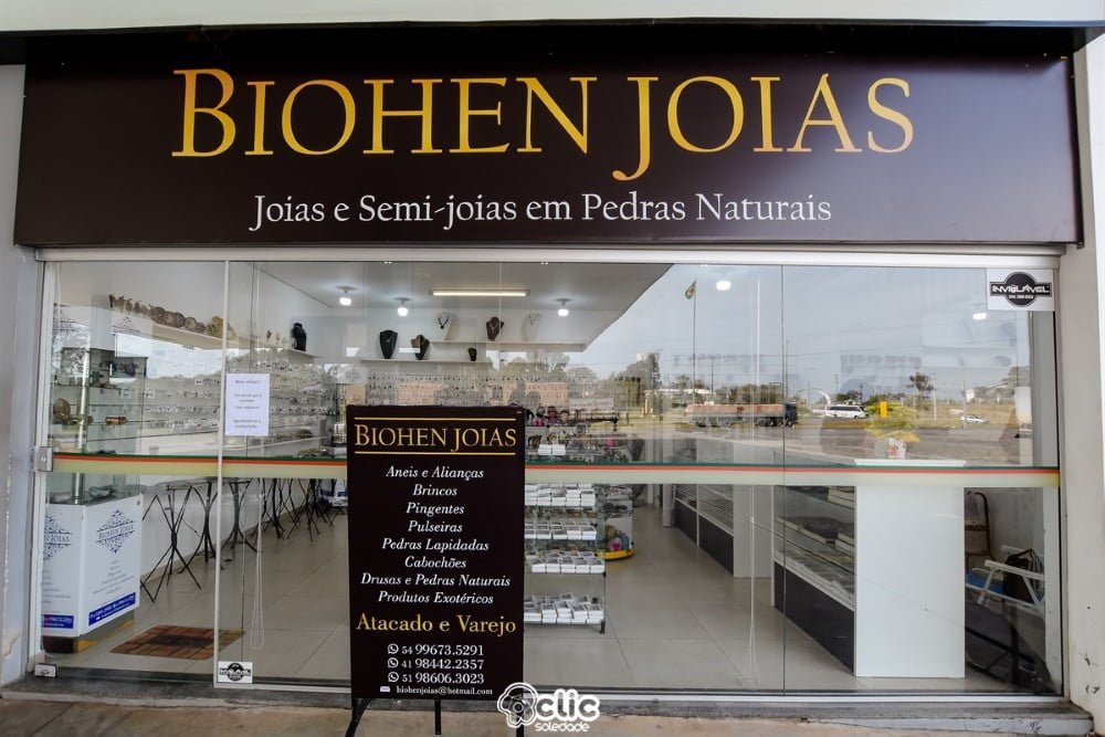 Conforme Neuri, a Biohen Joias é uma loja completa. “Estamos localizados em um ponto estratégico, na entrada de Soledade. Assim as pessoas que estiverem de passagem podem parar e contemplar o que a cidade tem de melhor, que são as pedras preciosas”, assinalou.