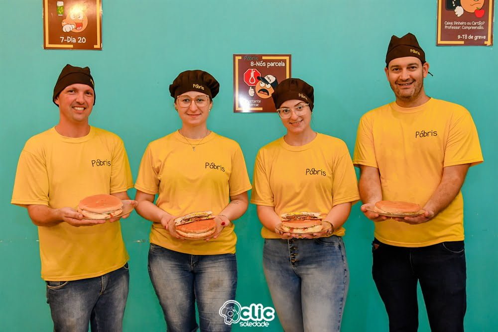A tradição do Póbris é colocar nomes criativos nos seus lanches. “Por isso vamos ter seis tipos de xis, o Tradicionalzinho, FrangoLindo, CalabresaSaborosa, BaconAVida, CoraçãoTunTun e o Misturadin. Todos eles fartos, com um pão maior que o normal e bife de hambúrguer caseiro fabricado pela franquia, com carne selecionada”, conta Josiane Schultz, uma das responsáveis pelo Póbris de Soledade.