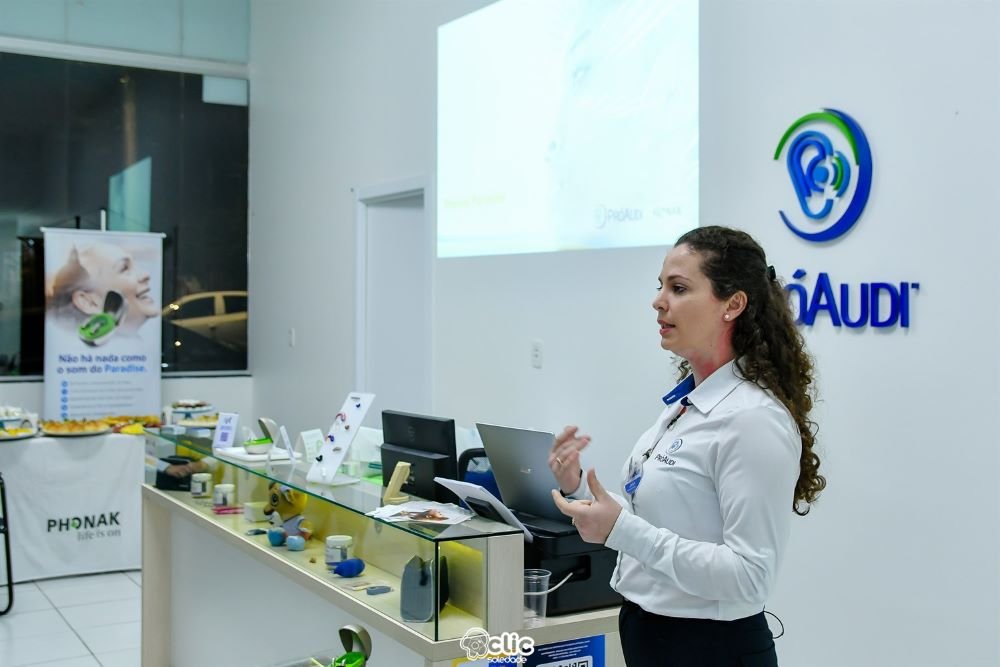 Na ocasião, os benefícios e vantagens da nova linha foram apresentados pela fonoaudióloga e gerente de produtos da PróAudi Jamile Albiero. “O Paradise traz um som mais nítido e natural, levando a uma excelente compreensão de fala, possui um recurso de cancelamento de ruído personalizado, recursos esses todos pensados para a redução do esforço auditivo do paciente com deficiência auditiva”, afirmou.