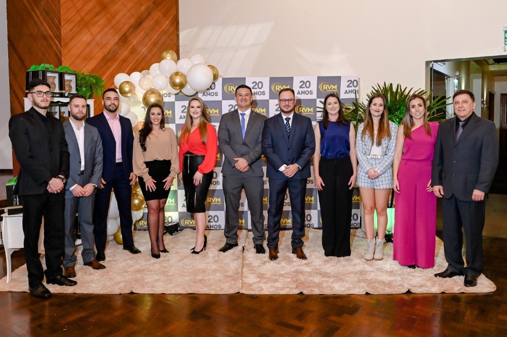 Na noite de sexta-feira, 04 de agosto, a empresa RVM celebrou seus 20 anos de atuação com um jantar de confraternização realizado no clube comercial de Soledade. O evento reuniu sócios, ex-sócios, fundadores, colaboradores, ex-colaboradores, contadores e outras autoridades locais e regionais.