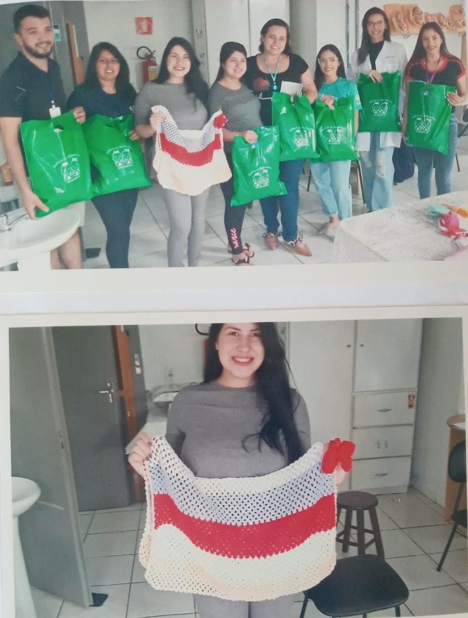 O trabalho é minucioso e cheio de carinho. “O nosso enxovalzinho é composto em torno de quinze peças. É uma mantinha, um travesseiro, uma fronha, sapatinho, um babeiro, um paninho de boca, dois conjuntinhos de pijama, um casaquinho, uma touca, e nós colocamos tudo isso e entregamos para as gestantes”, detalha Neiva.