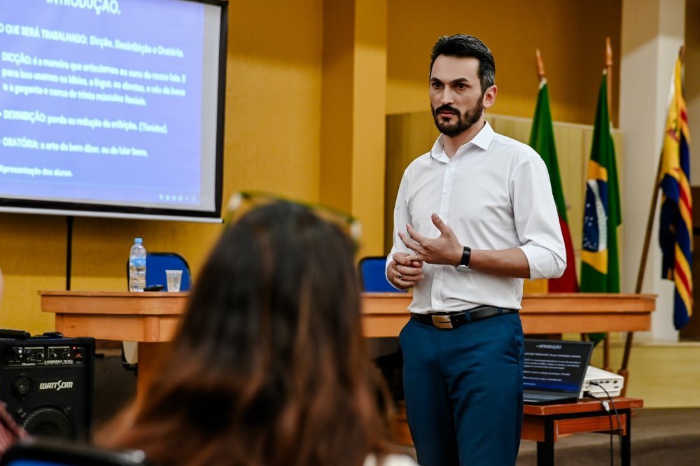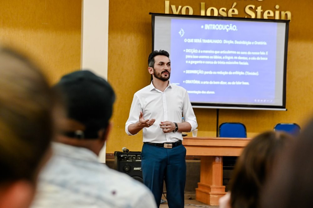 Na noite desta segunda-feira, 28 de outubro, Soledade recebeu a aula inaugural gratuita do curso de dicção, desinibição e oratória, ministrado por Gilvan Silva, representante da Hope Carreiras, de Passo Fundo. Realizada no Salão Azul da Prefeitura, a aula foi a primeira de um treinamento com sete encontros, voltado pessoas interessadas em melhorar suas habilidades de comunicação tanto na vida pessoal quanto profissional.