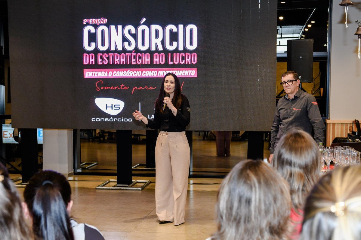 A apresentação foi conduzida pelos sócios-proprietários Vanessa Vidaletti Lago e Luciano Rocha, que compartilharam informações sobre o uso do consórcio como ferramenta de investimento e planejamento patrimonial.