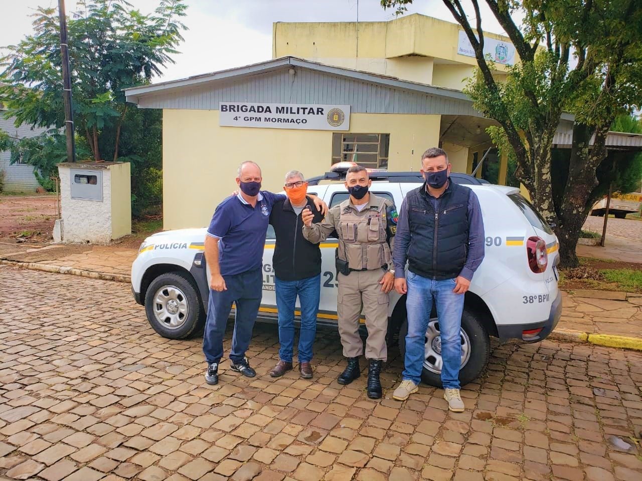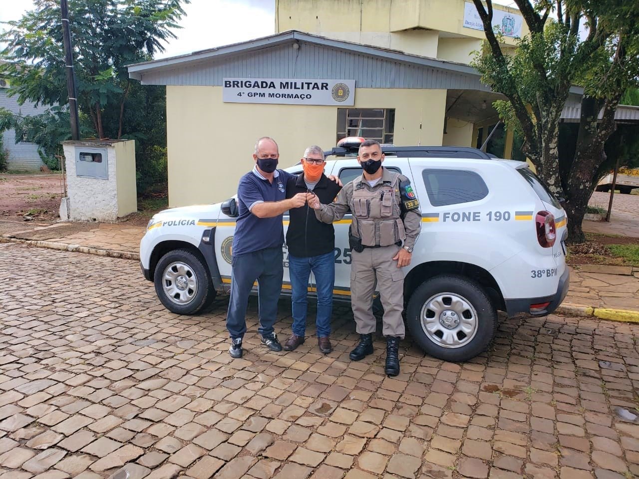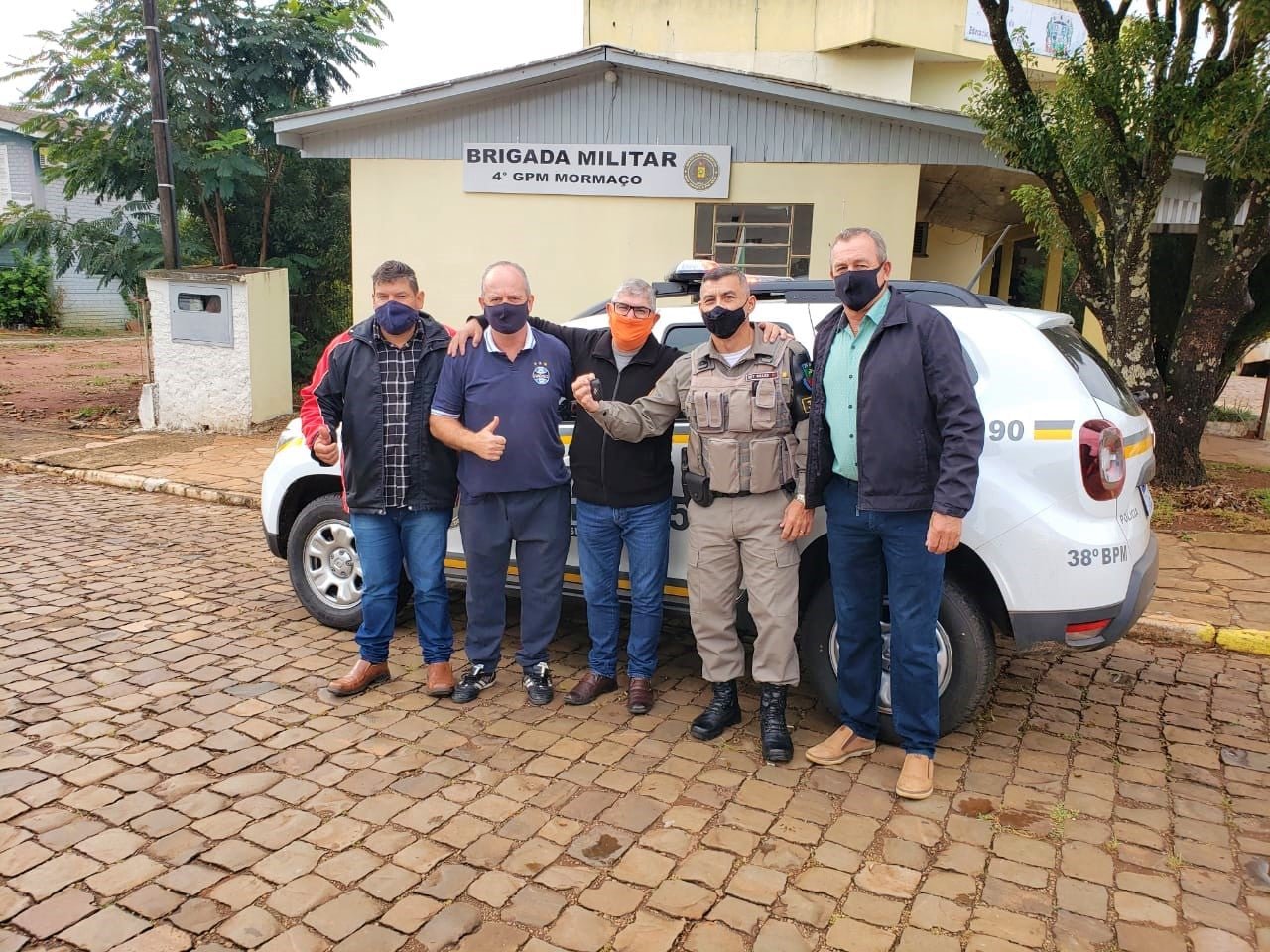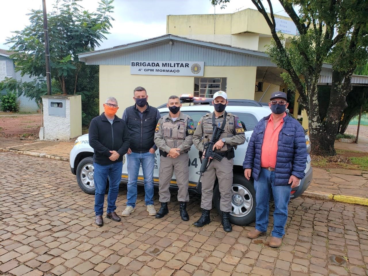 O assessor do deputado Adolfo Brito, Júlio Borges, recebeu a viatura da Brigada Militar, juntamente com o Sargento Rudinei Telles – Comandante do Grupamento de Mormaço, Prefeito Rodrigo Trindade, vice-prefeito Sergio Knopf, vereador Edson Schroeder, vereador Wagner de Lorena e o vereador Adelar Derlan.