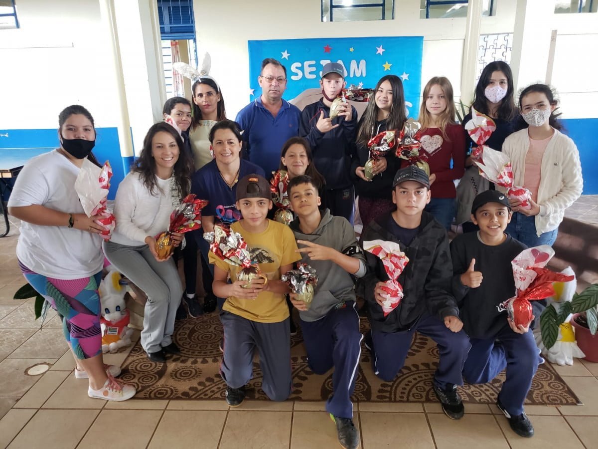 Os ovos foram entregues na terça-feira, 12/04, durante a Festa de Páscoa, realizada pela administração municipal, e também nesta quarta-feira, 13/04, nas escolas municipais e estadual para crianças que estudam até o 9º ano do ensino fundamental.
