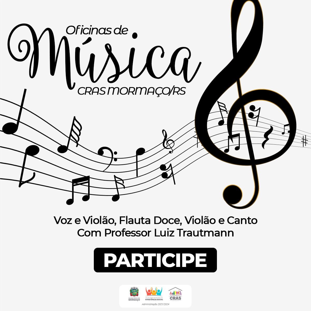 A oficina de música, as inscrições são para voz e violão, flauta doce e canto, e podem ser realizadas nas modalidades infantil, juvenil e adulto. O Coral da terceira idade “Cantar é Viver” também possui vagas, e as aulas de ambas as oficinas têm início previsto para o dia 08/02. Para quem participava ativamente das oficinas em 2022 não precisa realizar novamente a inscrição.