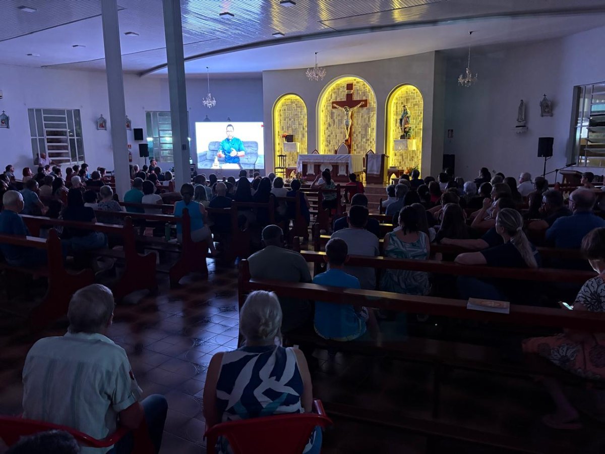 A noite de segunda-feira, 26/01, marcou a apresentação do documentário Nossa Senhora dos Navegantes: fé e tradição – uma história centenária em Mormaço. A exibição ocorreu após a novena e reuniu a comunidade na igreja para acompanhar o registro audiovisual que resgata a história dos 100 anos da Festa de Nossa Senhora dos Navegantes no município.