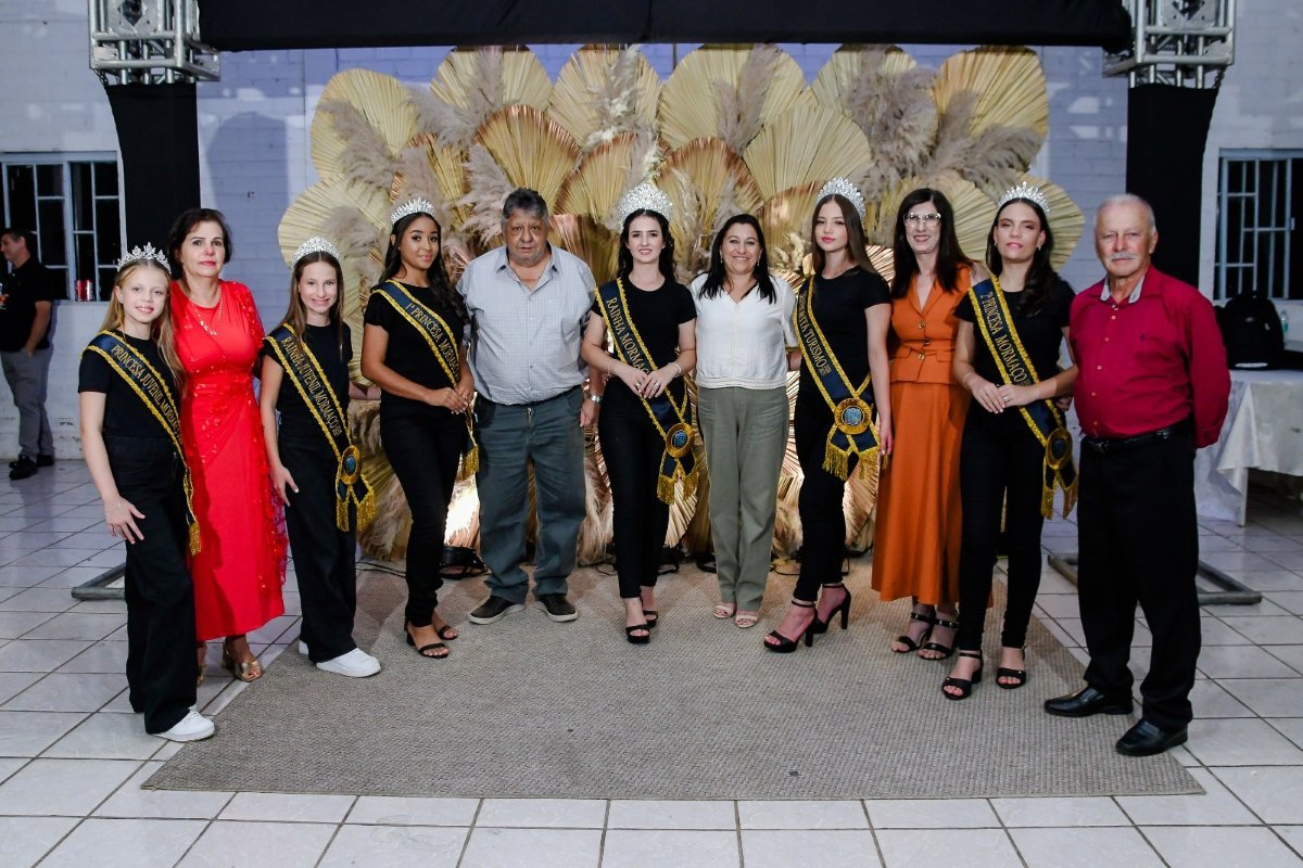 Durante a programação também foi realizada a despedida da corte que representou o município nos últimos anos, composta pela rainha Cybele Costa Sanderson, pela primeira princesa Laura Machado Schroeder e pela segunda princesa Myra Borer.