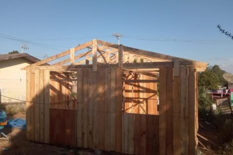 As moradias são em madeira, compostas por dois quartos, sala e cozinha integrada e banheiro em alvenaria, totalizando 36m²