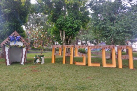 A equipe do Departamento Cultural da SMECD dá início aos preparativos pascalinos na praça central, avenida e pórtico.