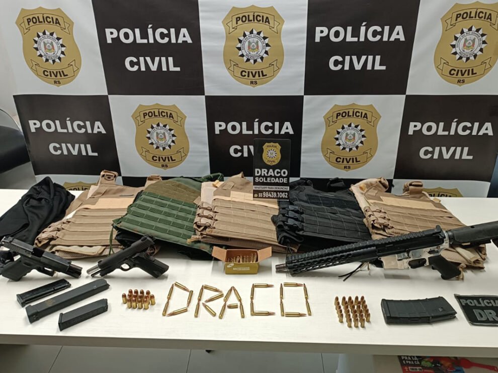 Na manhã desta quarta-feira (22/10), a Polícia Civil, por meio da Delegacia de Repressão às Ações Criminosas Organizadas (DRACO) de Soledade, realizou uma diligência no bairro Farroupilha, onde apreendeu um conjunto de armas e equipamentos de alto poder ofensivo.