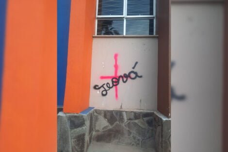 O casal de jovens foi identificado pelo Setor de Investigação da Polícia Civil. O Clube Comercial já solucionou os problemas da pichação, pintando o local.