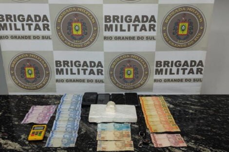 Durante a busca veicular a polícia encontrou 1kg de cocaína, R$ 560 em dinheiro, celulares e uma máquina de cartão de crédito.