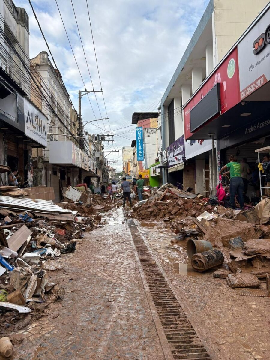 Durante a visita, foram verificados os impactos causados pelas chuvas, com famílias atingidas, casas danificadas, estabelecimentos comerciais destruídos e moradores enfrentando prejuízos e a falta de itens básicos do dia a dia.