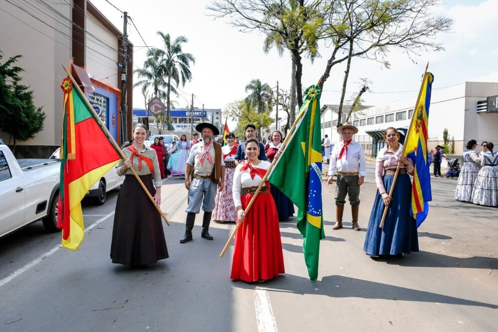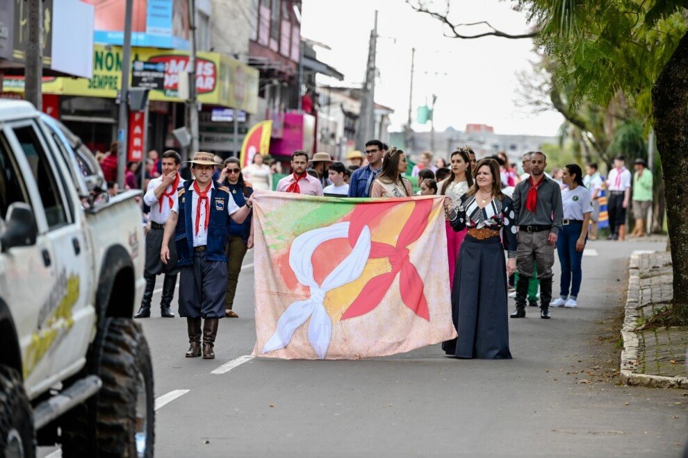 Neste ano, o tema da Semana Farroupilha, foi voltado à união de Chimangos e Maragatos, com o Centenário da Revolução de 1923, além do tema regional direcionado aos gaiteiros. Boa parte destas temáticas puderam ser vistas na avenida durante o desfile.