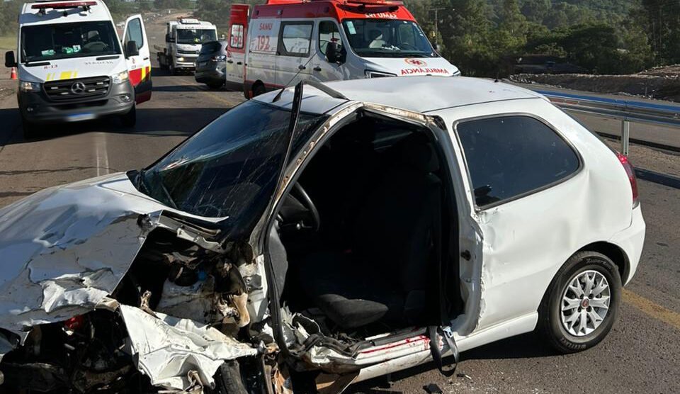 Colisão ocorreu na noite desta sexta-feira (05/12), no km 237 próximo à comunidade de Santa Bárbara. Uma mulher ficou gravemente ferida.