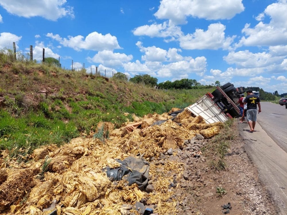 De acordo com informações colhidas no local, o condutor do caminhão seguia pela ERS 153, sentido a Santa Cruz do Sul, quando nas proximidades da rótula, após o trevo de acesso principal, à cidade de Barros Cassal tombou o caminhão carregado de fumo.