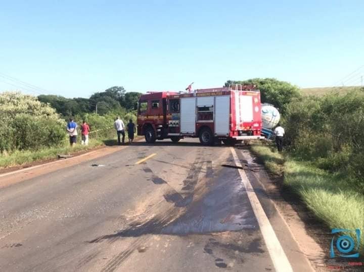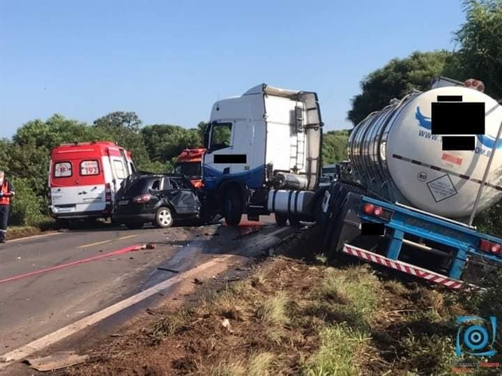 Um automóvel Spacefox colidiu com um caminhão de transporte de laticínios. O Batalhão Rodoviário, ambulâncias do SAMU, Corpo de Bombeiros e IGP – Instituto Geral de Perícias atendem a ocorrência.