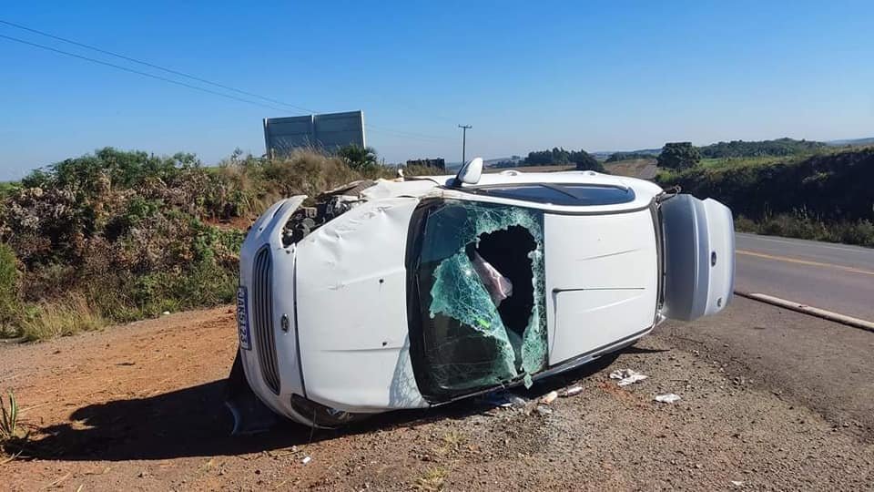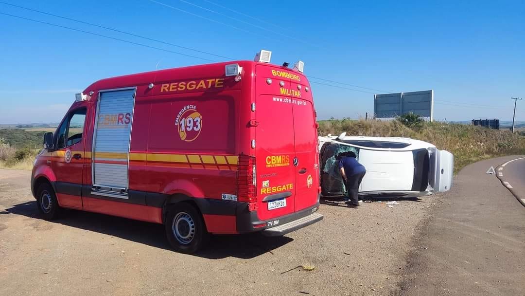 Um veículo tombou na ERS-332 em Soledade no final de manhã de quinta-feira, 08/06, na entrada para o aeroporto.