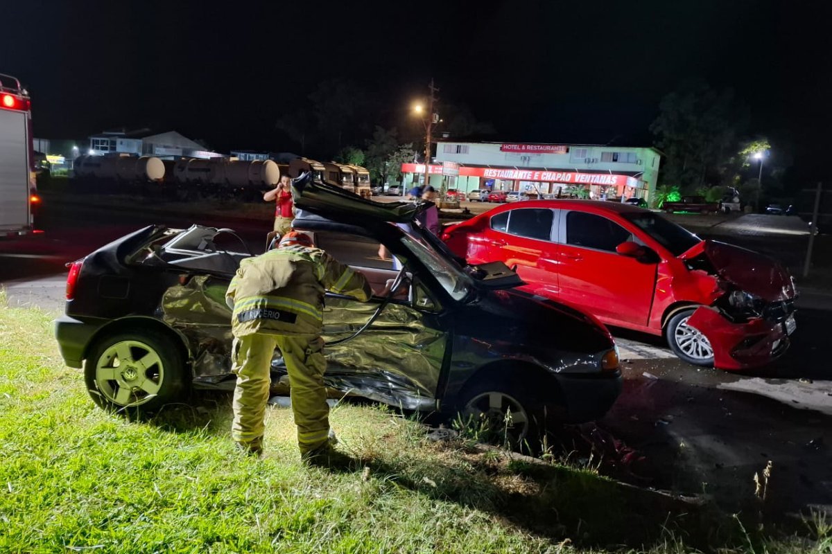Um acidente registrado na noite de sexta-feira, 28/11, no trevo da bandeira, no perímetro urbano da BR-386 em Soledade, deixou seis pessoas feridas, entre elas duas crianças que sofreram lesões mais graves. A colisão envolveu um VW Gol, de Soledade, e um Fiat Cronos com placas de Chapecó (SC), que trafegava pela rodovia no sentido interior–capital.